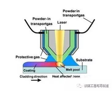 Synchronous laser cladding sends the cladding material directly into the laser beam, so that feeding and cladding are completed at the same time. The cladding material is mainly fed in the form of powder, and some also use wire or plate for synchronous feeding. The main process flow of synchronous laser cladding is: pretreatment of substrate cladding surface-feeding laser melting-post heat treatment.